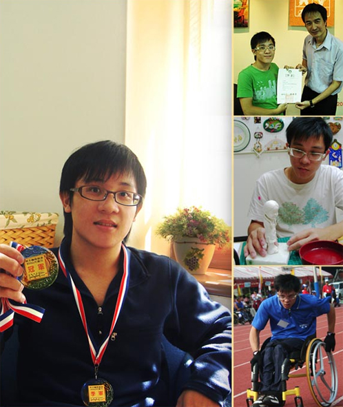 他,張程皓,是視覺傳達設計系4年級生,或許你曾在校園中遇見他,或許你曾看過他使用輪椅行進,但你可能不曉得,他使用輪椅已經長達8年,未來還要跟輪椅相伴好久好久…… 他在2009的這一年獲得不少佳績,有台中市政府優良街頭藝人執照(創意工藝類-黏土捏塑)、創辦本校公仔社並擔任社長一職、參加全國脊髓損傷者運動大會輪椅競速800公尺接力賽冠軍、400公尺接力賽季軍、男子組個人400公尺競速季軍及輪椅攻頂挑戰賽季軍。在資源教室邀請下,他也熱心的擔任本校身心障礙學生輔導委員會97、98年度的日間部學生代表及無障礙校園環境推行小組學生代表,每每在會議上都能積極為身心障礙學生提供建言。 問起程皓與公仔的緣分時,他說:「在視傳系辦理的專題講座中,因緣際會認識了專作公仔的蔡耀德老師,在拜師學藝後順利考取執照,並在老師的鼓勵之下,於本學期創辦了公仔社,希望藉由社團成立能將手作公仔推廣至校園。」