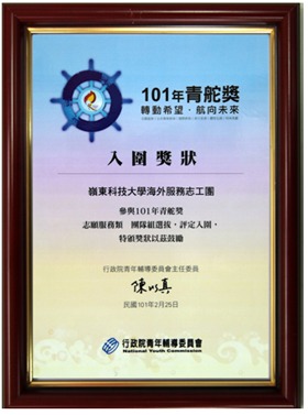 海外服務志工團榮獲101年青舵獎入圍獎
